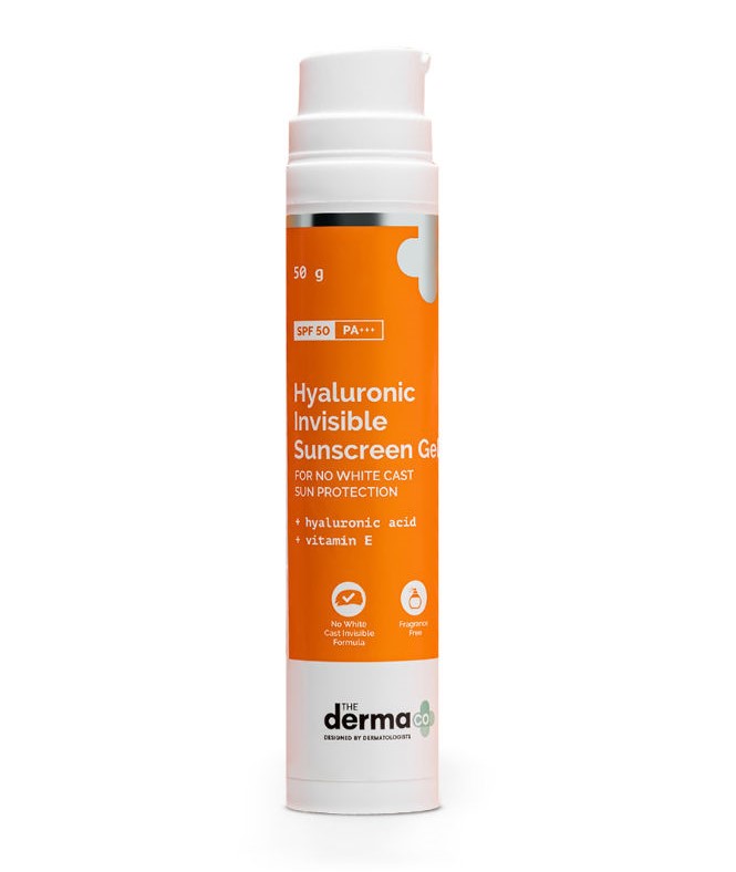 The Derma Co Hyaluronic Invisible Sunscreen Gel is a next-generation sun protection essential designed to give your skin powerful defense without the heavy, greasy feel of traditional sunscreens. This innovative gel formula blends seamlessly into the skin, creating an “invisible” shield that protects against harmful UV rays while keeping your skin looking fresh, smooth, and naturally radiant. Infused with hydrating ingredients like hyaluronic acid, it not only safeguards your skin from sun damage but also helps maintain moisture levels, leaving your skin soft, plump, and comfortable throughout the day. Its lightweight, silicone-based texture glides effortlessly, often feeling like a smooth primer on the skin, making it perfect for everyday use and even under makeup. Unlike traditional sunscreens that may leave a white cast or sticky residue, this invisible gel absorbs quickly and delivers a breathable, non-greasy finish that suits all skin tones. It offers high SPF protection to help prevent tanning, sunburn, and premature aging caused by UVA and UVB exposure, making it an ideal companion for both indoor and outdoor routines. Perfect for those who want a weightless, barely-there sunscreen, this gel combines sun protection with skincare benefits—giving you a smooth, protected, and hydrated complexion every day.